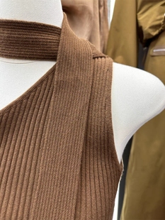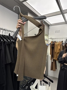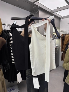 十三行2025早秋新款 背心女 辣妹风斜肩领设计感绑带挂脖针织吊带衫