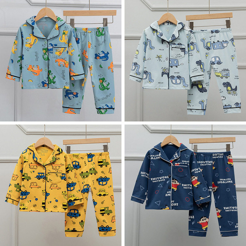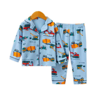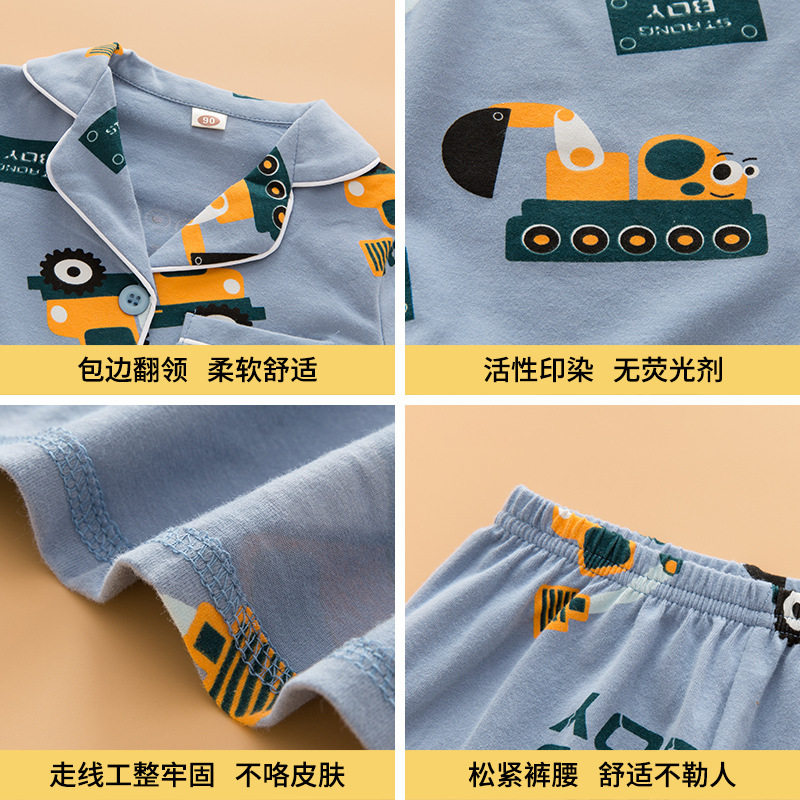 春秋儿童睡衣纯棉开衫 男童工程车挖掘机推土机汽车家居服宝宝内衣