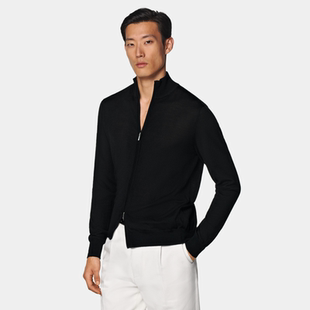 SUITSUPPLY黑色美利奴羊毛男士 毛衣 拉链开襟衫