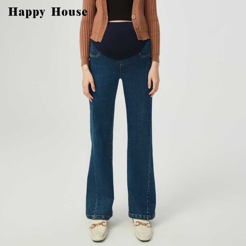 女孕期秋装 孕妇牛仔喇叭裤 微喇裤 外穿加绒加厚不勒肚子大码 秋冬季