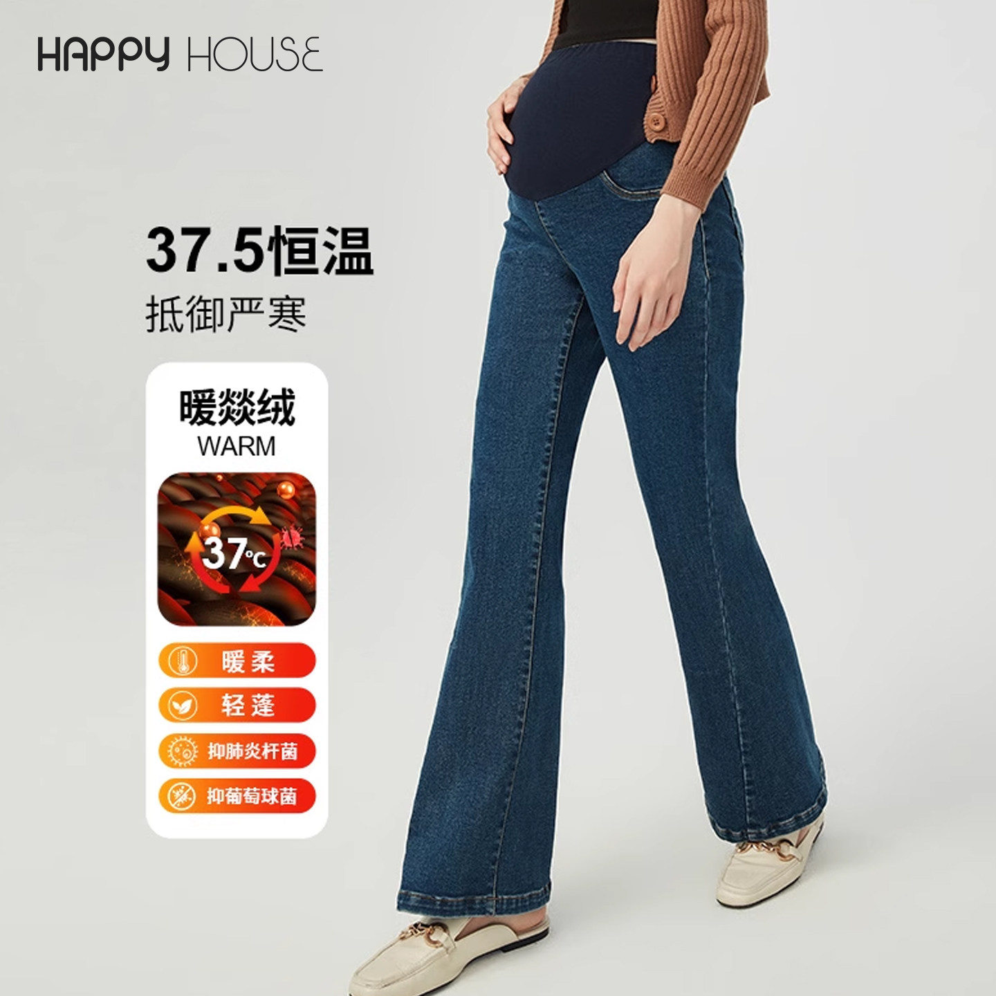 冬装 MASANON孕妇裤 不勒肚子加绒微喇裤 加厚喇叭裤 冬外穿2025新款
