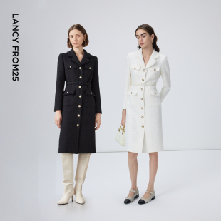 朗姿25棉质复古小香风设计感高级感显瘦裙通勤休闲收腰连衣裙冬季
