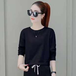 女上衣 春秋圆领宽松上衣ins潮长袖 2026短款 小个子高档卫衣女新款