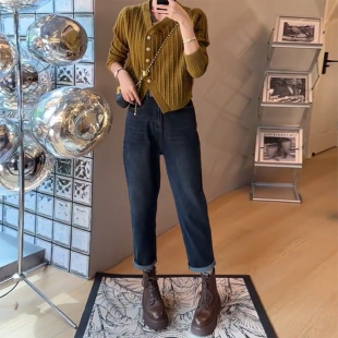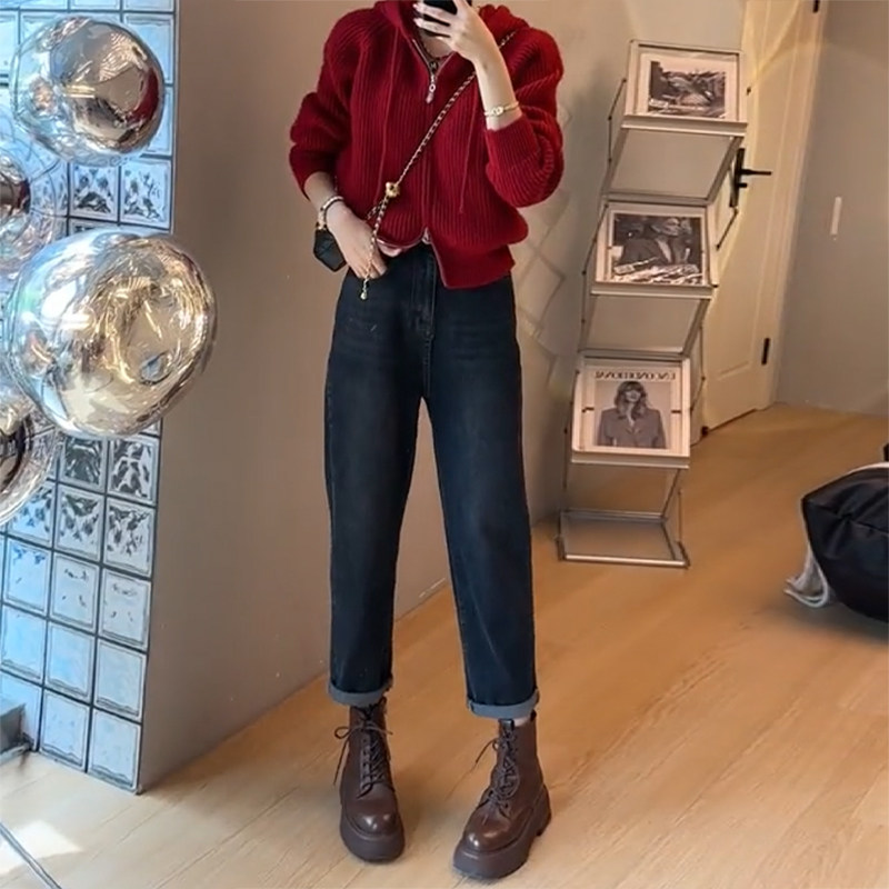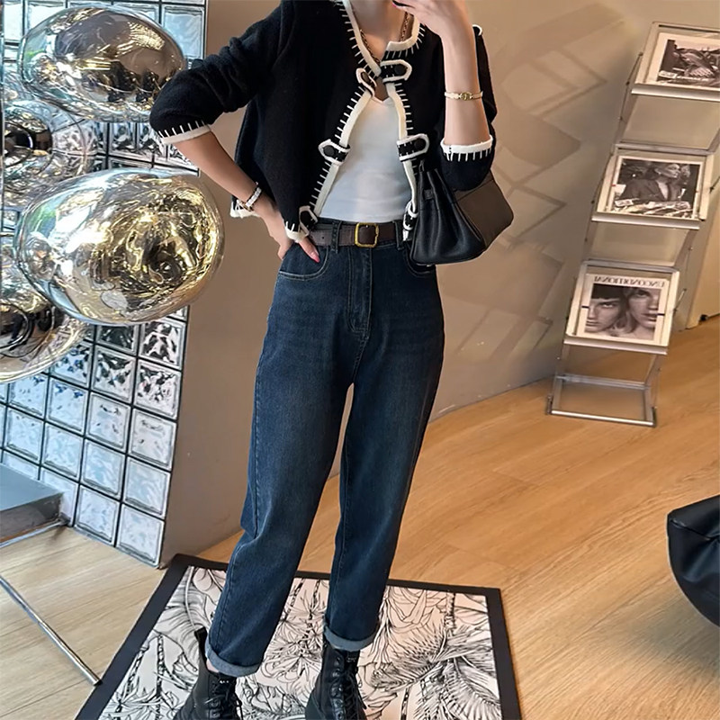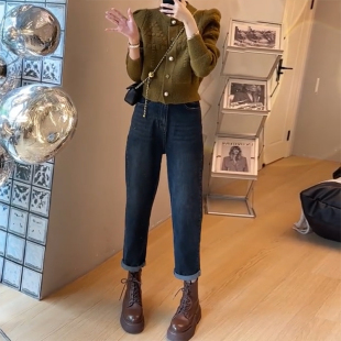 秋冬 子九分高腰哈伦老爹裤 145xxs七八分牛仔裤 女小个子梨形身材裤