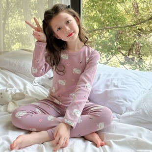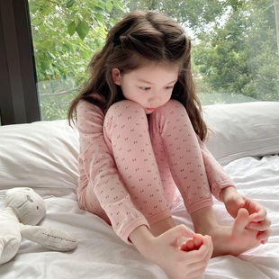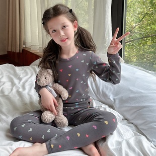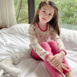 韩国女童纯棉保暖内衣套装 女孩无痕家居服 宝宝A类无骨秋衣秋裤