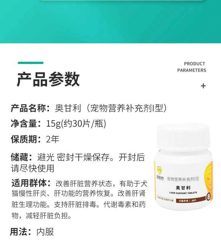 奥维他奥甘利犬猫狗狗保健护肝保胆肝受损肝硬化肝炎药莫瑞加肝脏