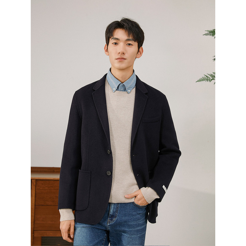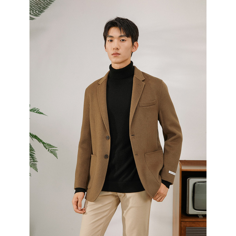ELI 真丝羊毛混纺平驳领釉面牛角扣休闲西服外套男春秋 杜松