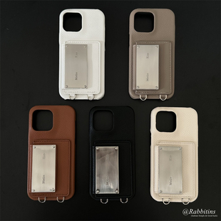 韩国设计Matin 13情侣保护 kim小众皮质简约斜挎适用17promax卡包手机壳苹果iphone16挂绳荔枝纹15挂脖时髦14