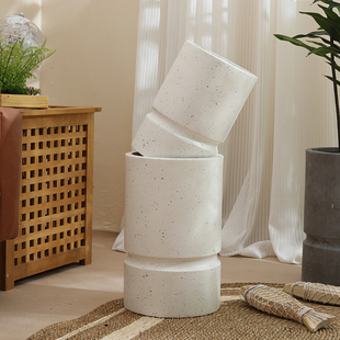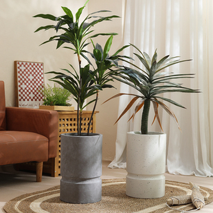 仿陶瓷花盆花卉绿植盆栽盆超大高档客厅天堂鸟塑料竖条纹落地竖纹