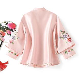 复古斜襟盘扣刺绣立领改良旗袍小衬衫 新款 上衣女2024年春秋季 中式