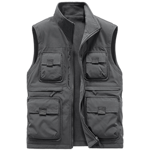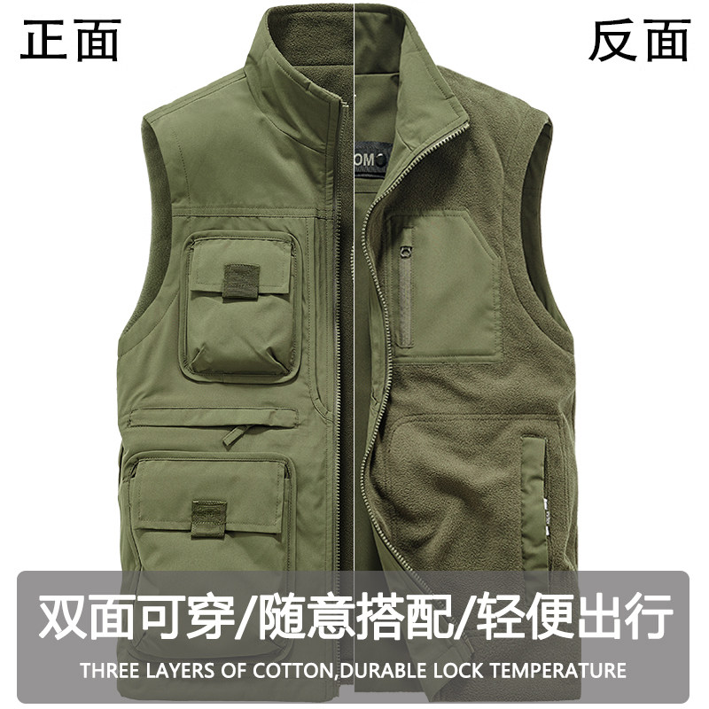 摇粒绒立领加厚防风保暖马甲背心外套 休闲秋冬男士 双面可穿 美式