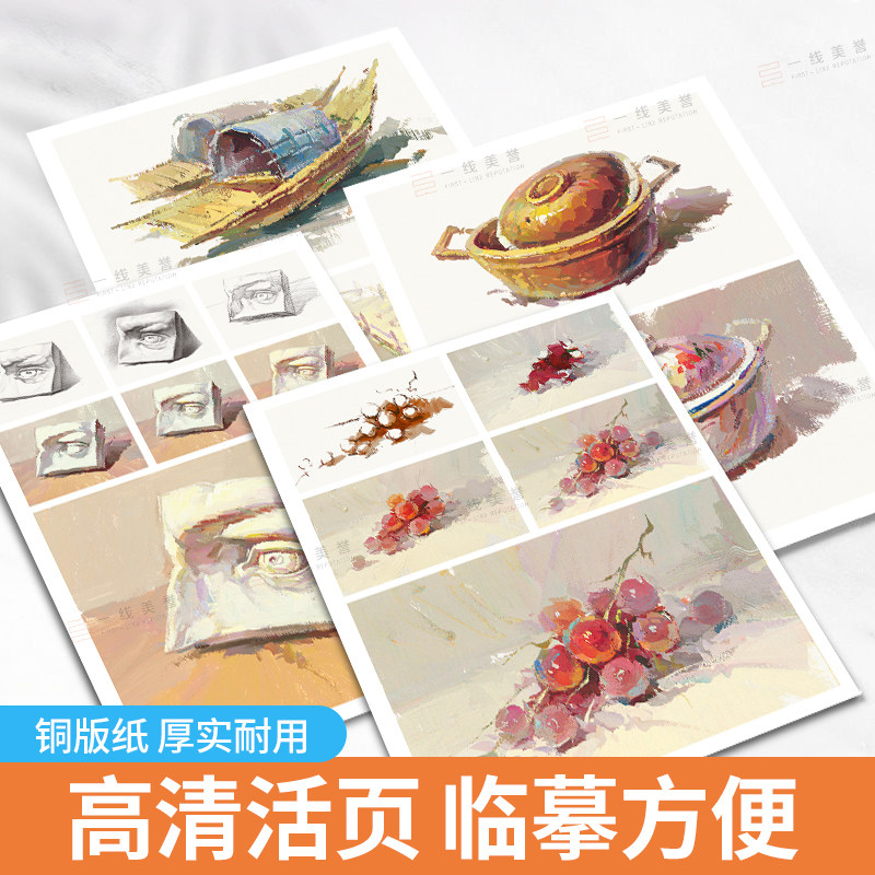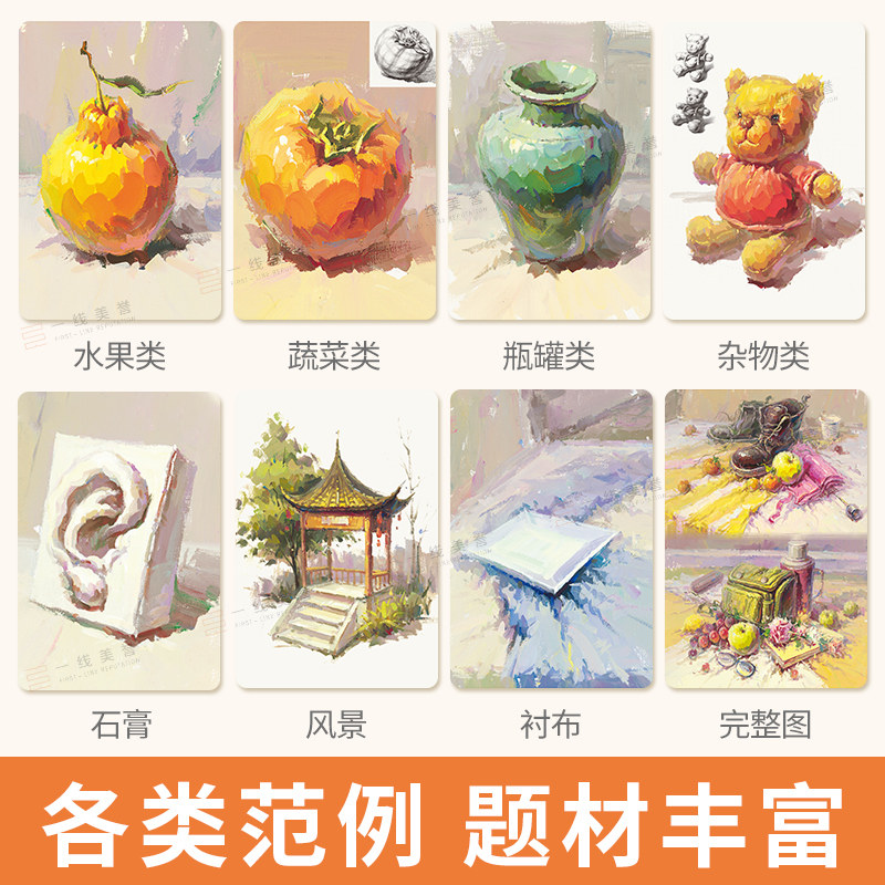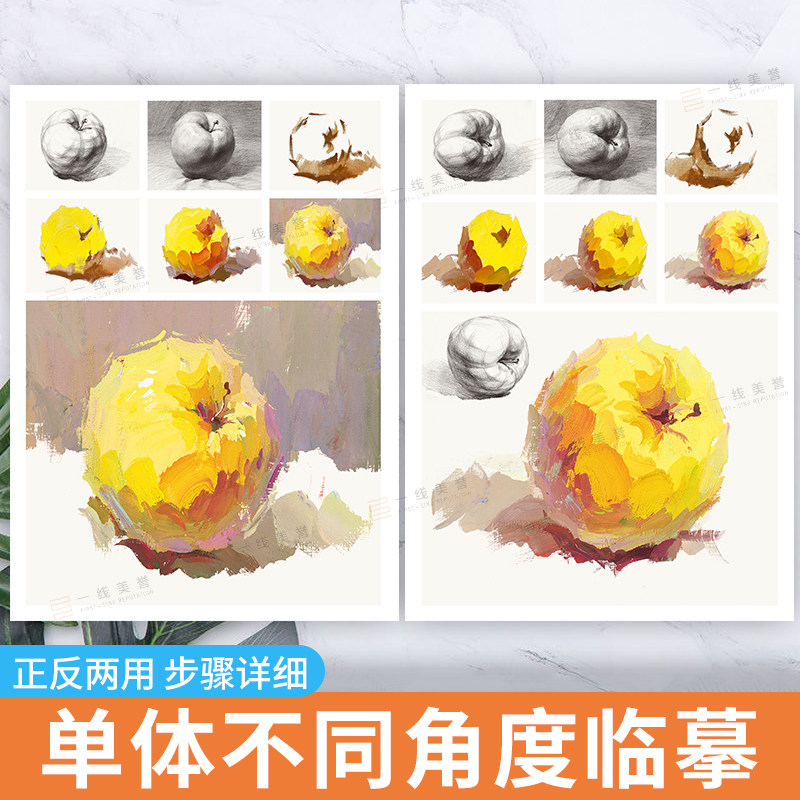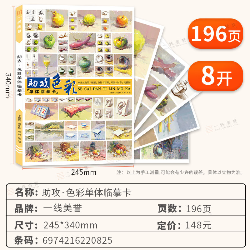 助攻色彩单体临摹卡 色彩临摹卡196页活页8开水果蔬菜瓶罐生活杂物石膏风景衬布对应完整图艺考高考联考校考教程教材水粉色彩