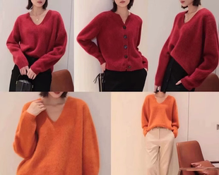 V领套衫 现货 多色羊绒拉毛针织开衫
