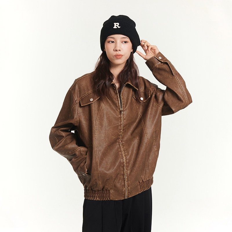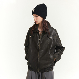 休闲翻领做旧皮衣 飞行员夹克情侣款 RAPPEYE 复古港风廓形宽松美式