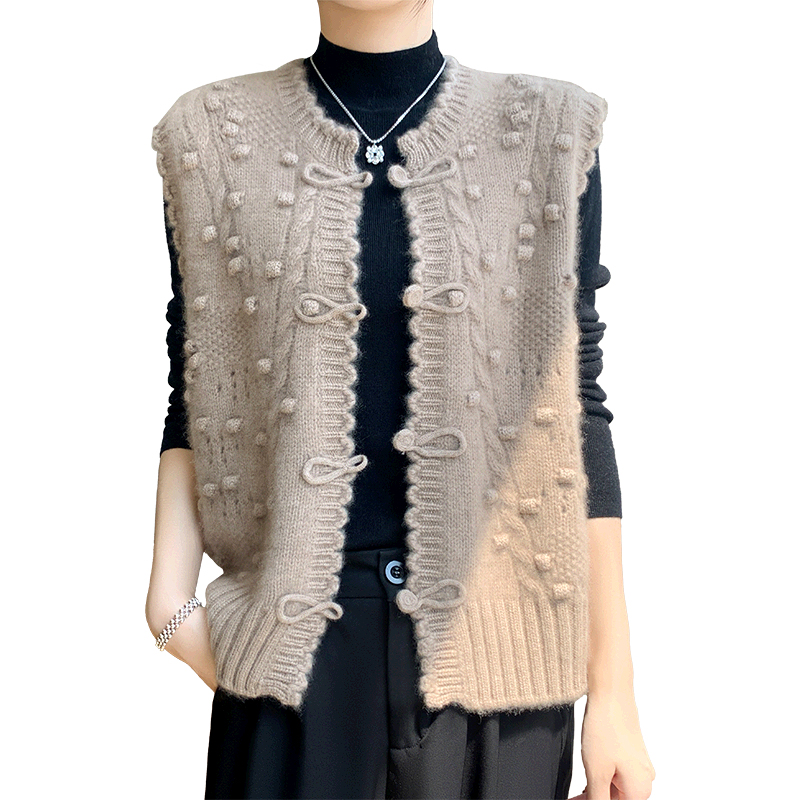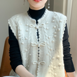 马甲背心宽松羊绒针织叠穿坎肩 无袖 100%羊毛开衫 女圆领绣花新中式