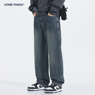 复古水洗休闲长裤 HomePanda春秋季 男宽松直筒美式 阔腿牛仔裤 新款