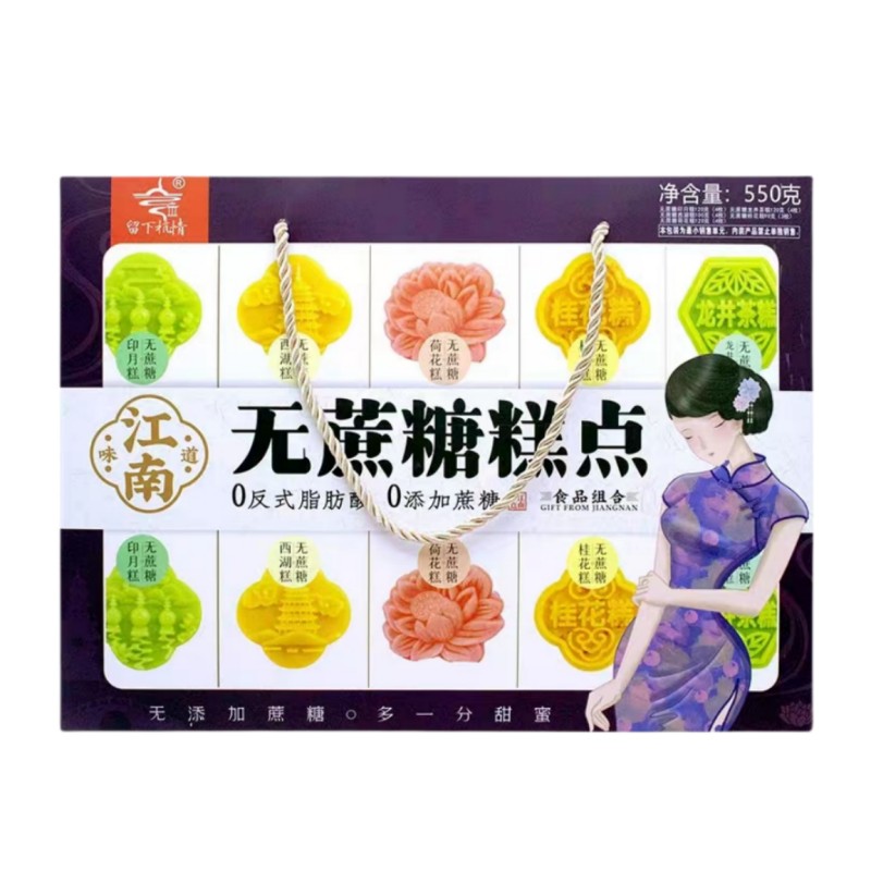杭州特产集留下杭情组合糕点西湖风味龙井茶荷花可选无蔗糖550g