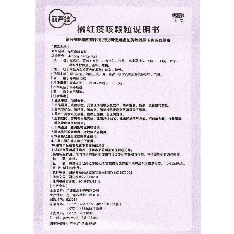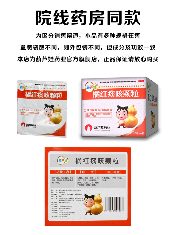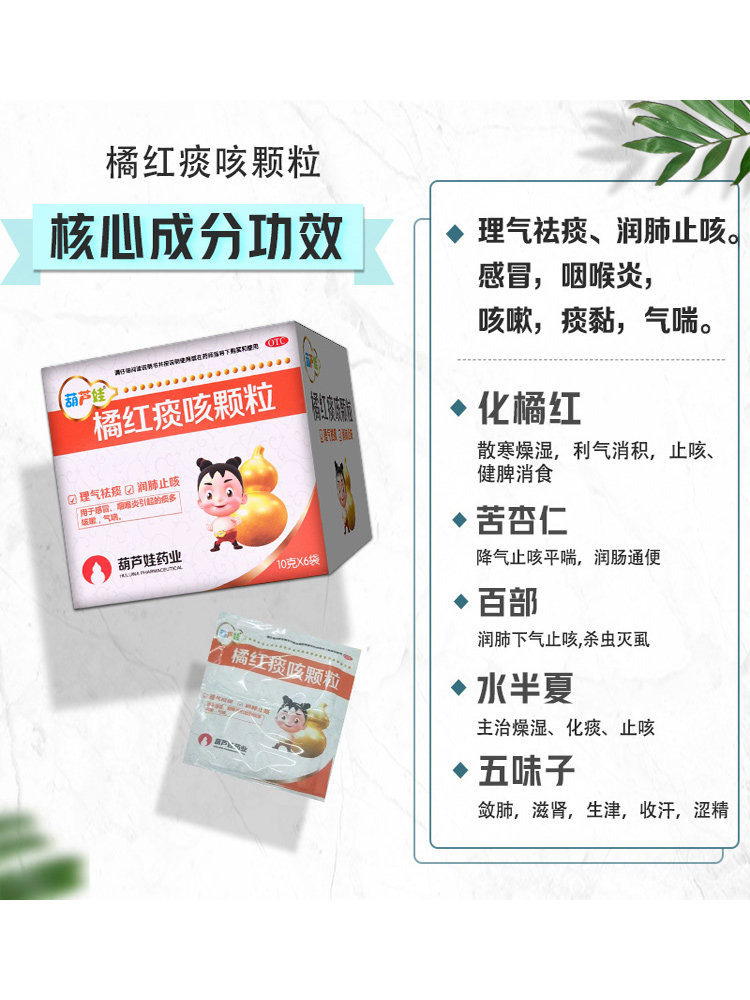 葫芦娃橘红痰咳颗粒6袋 正品 儿童感冒咳嗽药小孩止咳化痰药 包邮