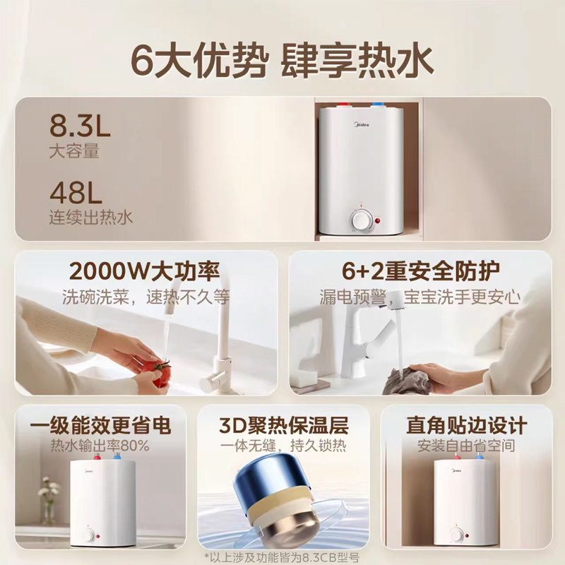 美 小厨宝热水器厨房家用迷你小型台下热水宝8.3CB官方旗舰