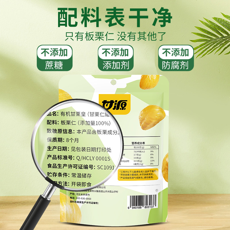 甘源有机板栗仁50g 5袋中秋礼包甘栗皇甜栗即食板栗仁零食炒栗子