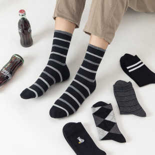 棉袜吸汗防臭青少年男生中筒袜 男袜黑色长袜男款 袜子男士 春秋新款