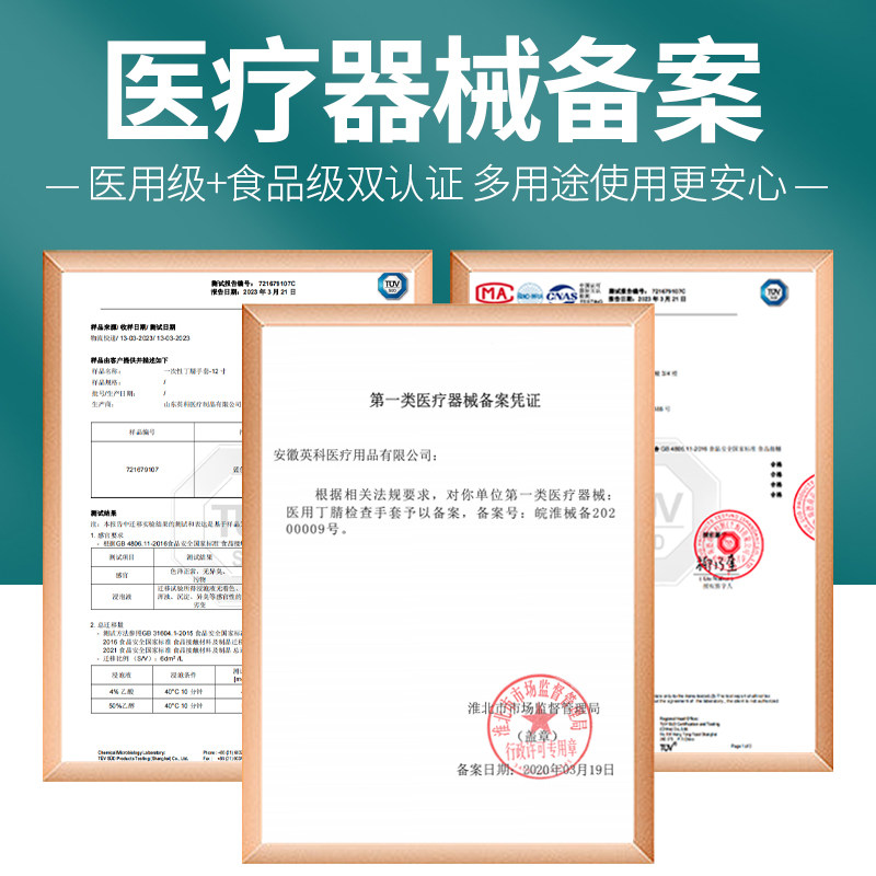 英科医用丁腈手套一次性加厚耐用医疗外科手术检查食品级乳胶橡胶
