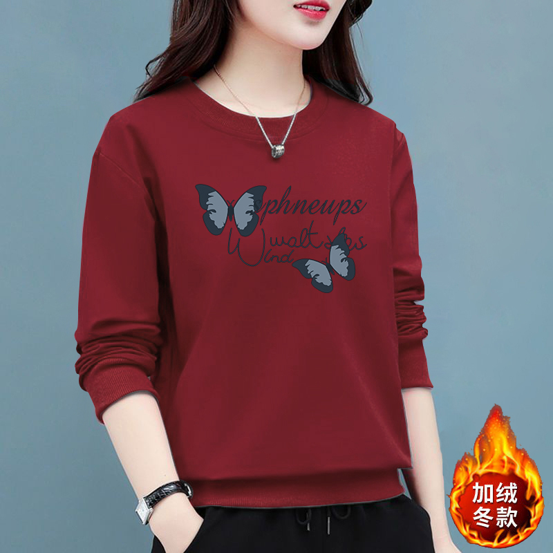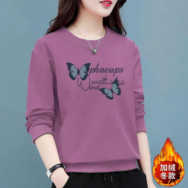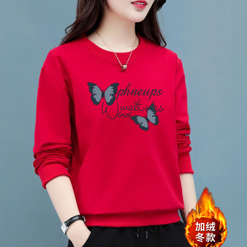 冬季 洋气长袖 宽松韩版 大码 上衣 打底衫 加绒加厚圆领卫衣女2026新款