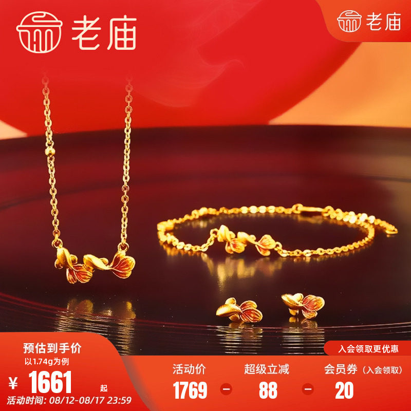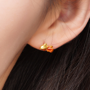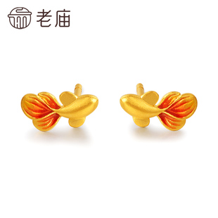 天猫惊喜盒 老庙黄金足金999古法古韵金富富有余鱼鎏彩锦鲤耳钉