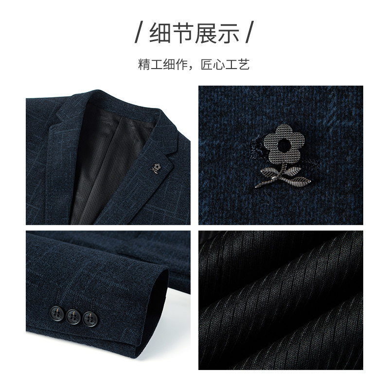 西装 花纹修身 外套男 海澜之家绒感弹力休闲西服男25秋冬新时尚 HLA