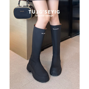 胖mm骑士靴2025新款 女靴子 女高筒靴粗腿黑色长筒靴大筒围长靴大码
