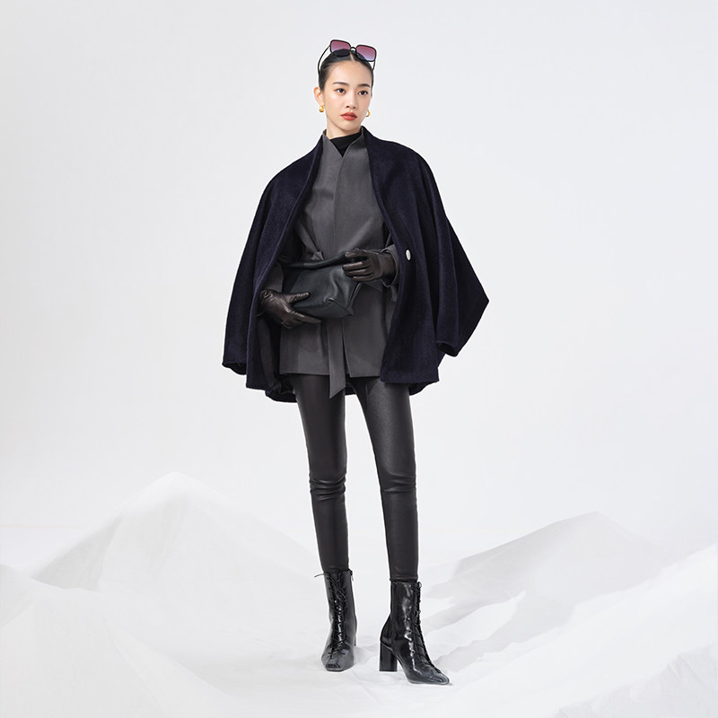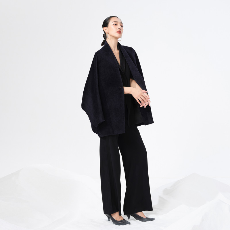 加厚款 新款 宽松廓形显瘦毛呢外套 秘鲁苏力羊驼毛大衣冬季 TU女装