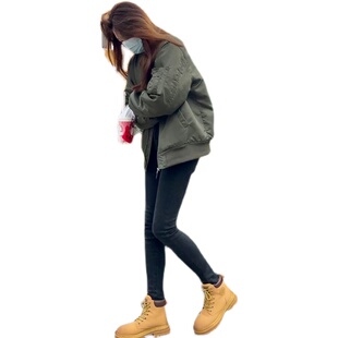 ma1飞行员夹克外套女秋冬加厚棉服韩系情侣棒球服军绿色ins潮棉衣