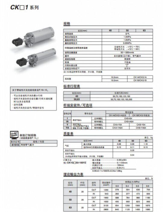 150 YAZ B40 100 CK1A 200 SMC夹紧气缸CKG1B 125