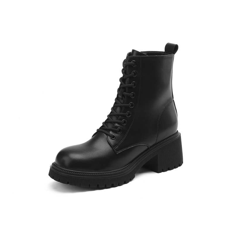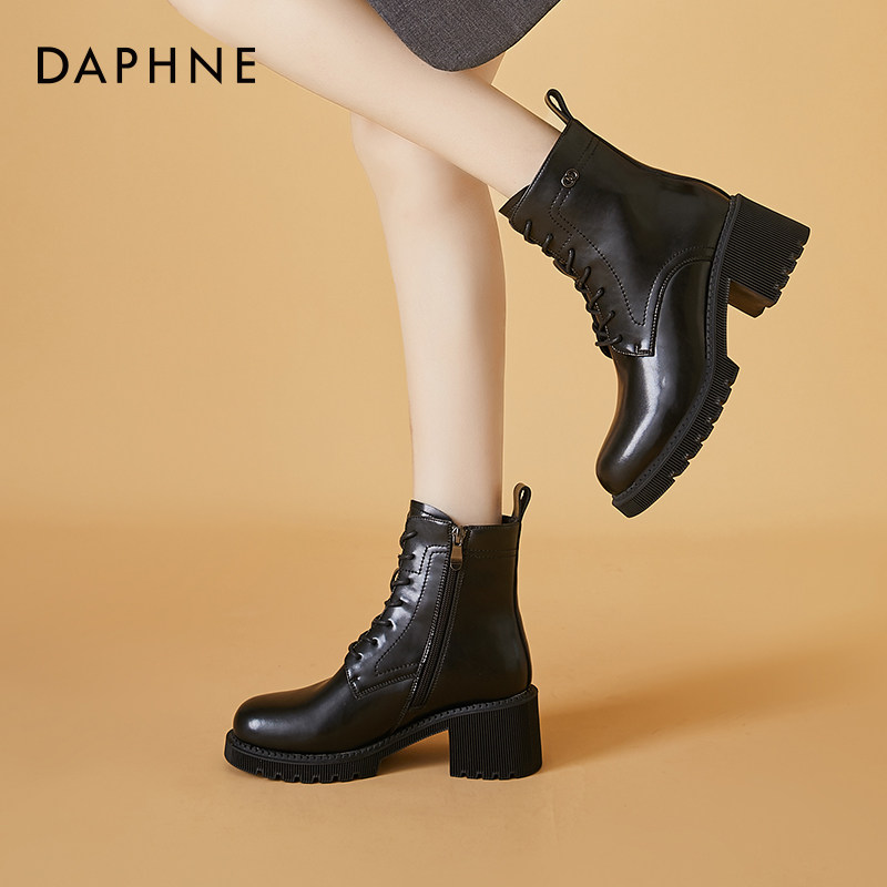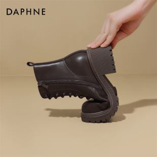 达芙妮马丁靴女款 秋冬加绒粗跟厚底英伦风小个子高跟短靴 2025新款