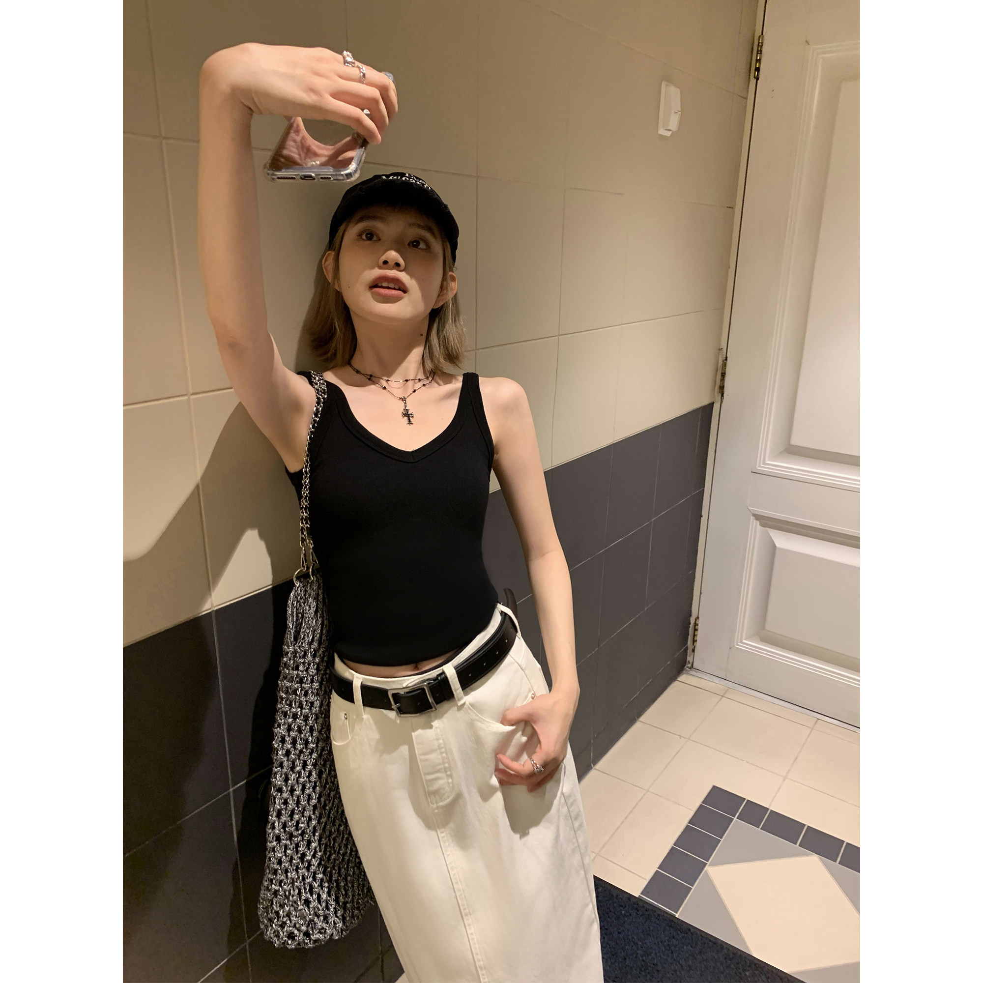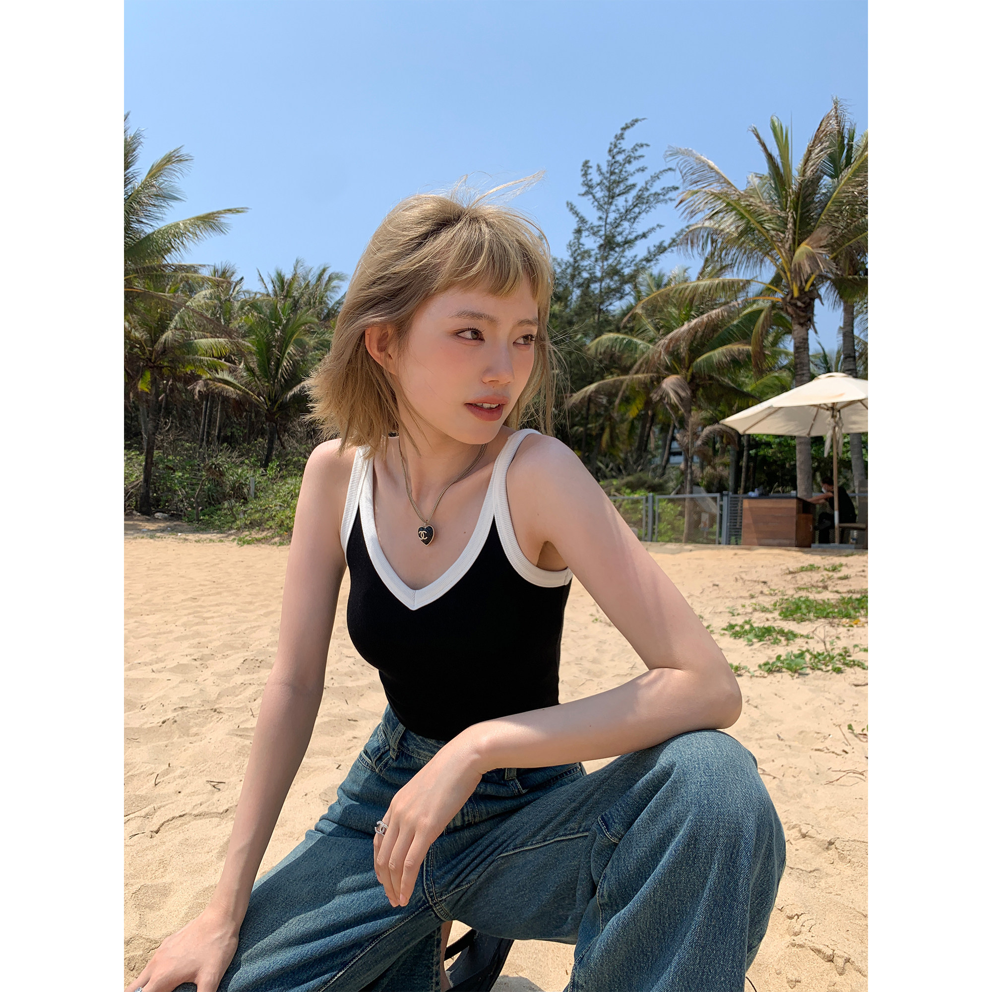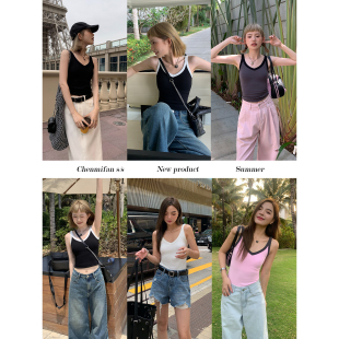 针织无袖 辰米范 修身 带胸垫v领吊带女外穿夏季 上衣 现货5折