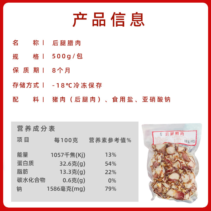红腊肉后腿500g农家烟熏肉自制五花后腿腊肉餐饮特色菜半成品商用