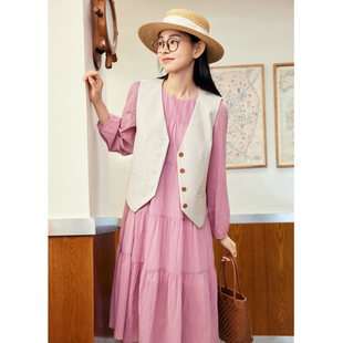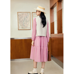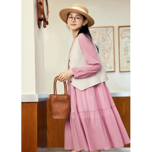 套装 紫涵粉色拼接衬衫 新款 马甲二件套女春秋季 裙子 连衣裙复古无袖