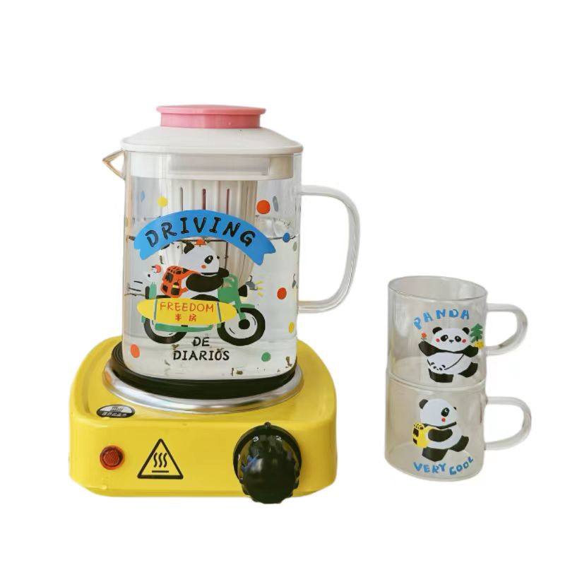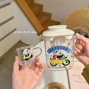 玻璃杯可爱水杯女士高颜值家用喝水带盖勺咖啡早餐小熊杯子冲泡杯