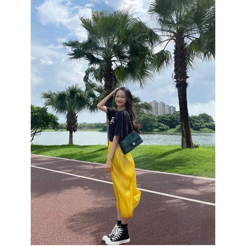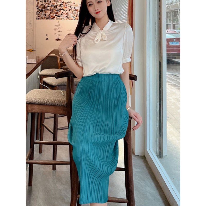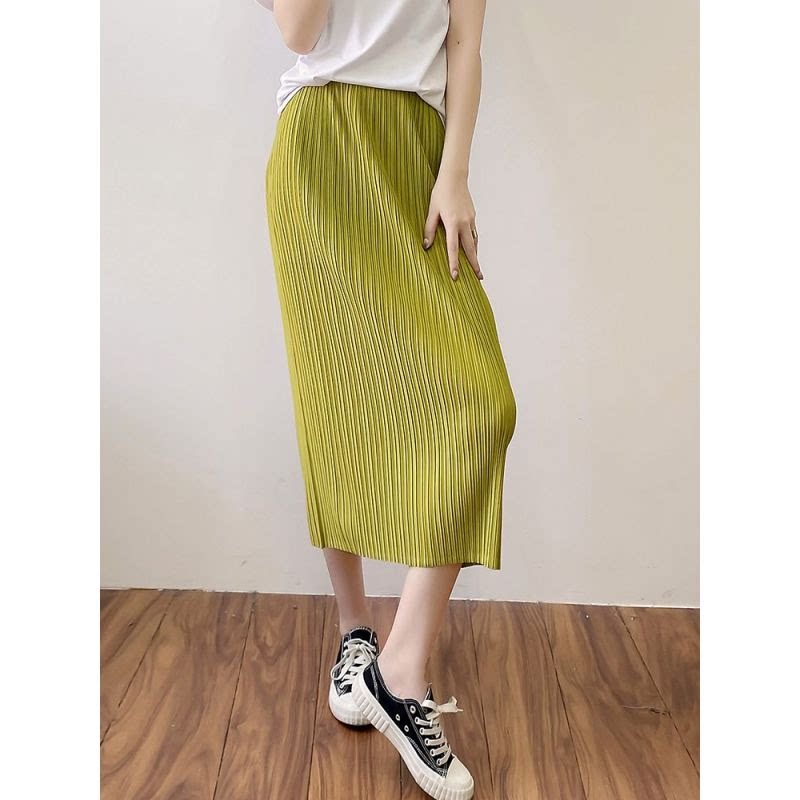宅褶皱半身裙绿色百褶裙女夏2025新款 003 高级感弹力高腰显瘦裙三