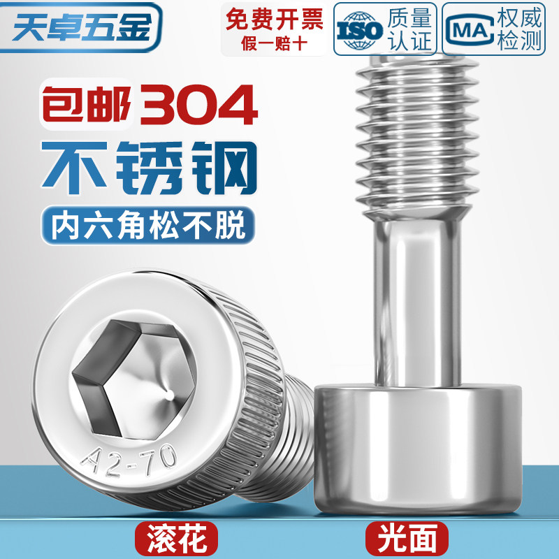 304不锈钢内六角松不脱螺丝钉手拧防松不脱出半牙螺栓MM3M4M5M6M8
