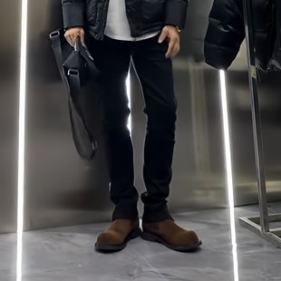 秋季 新款 韩版 设计款 脚口拉链休闲长裤 男修身 时尚 子 简约黑色牛仔裤