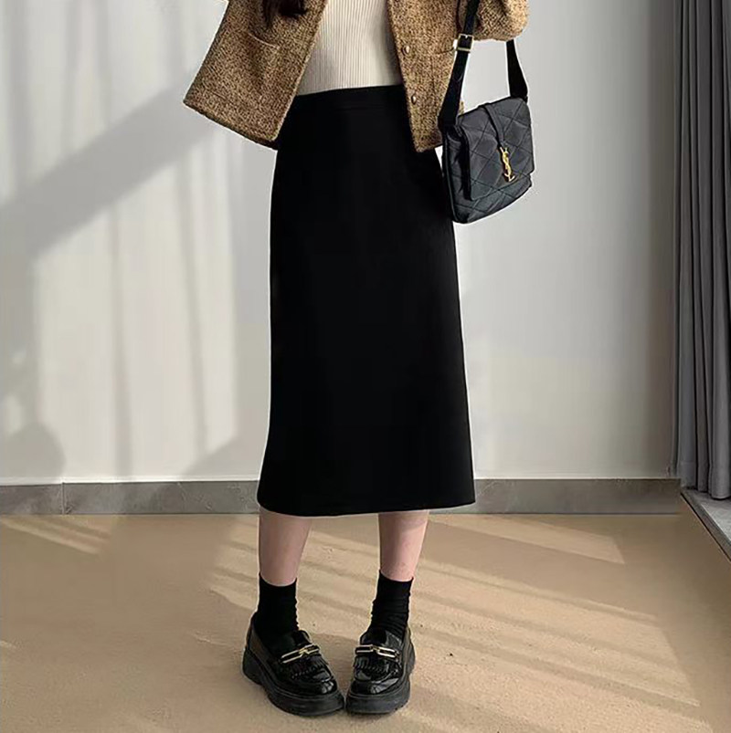 深灰色羊毛呢半身裙秋冬梨形身材a字裙大码 气质遮胯黑色包臂短裙