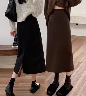 MIU系洋气开叉羊毛呢短裙女秋冬高腰防走光A字半身裙小个子包臀裙