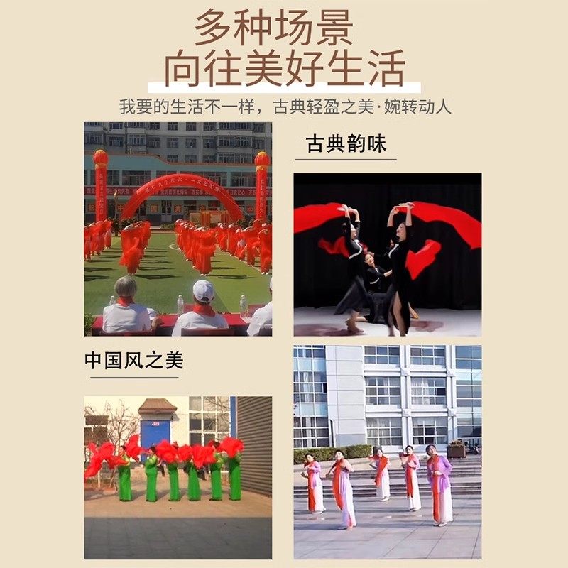 扇子舞蹈扇珊瑚颂古典舞长绸扇真丝加长纯大红大扇子跳舞演出道具