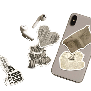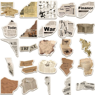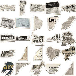 104张碎片文字贴纸美式 饰贴画 复古报纸文艺行李箱防水手帐素材装
