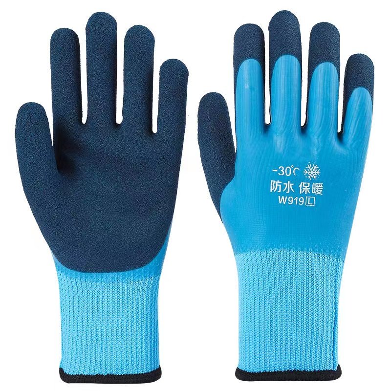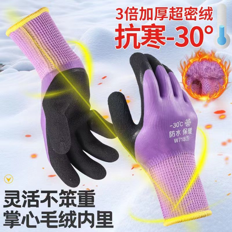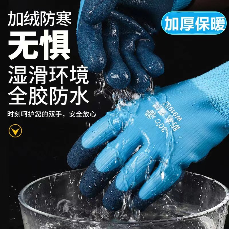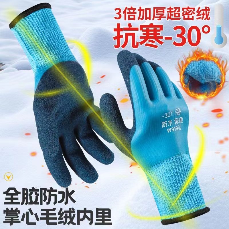 冬季 保暖加绒加厚防水毛圈劳保手套乳胶耐磨橡胶干活防滑工地防护