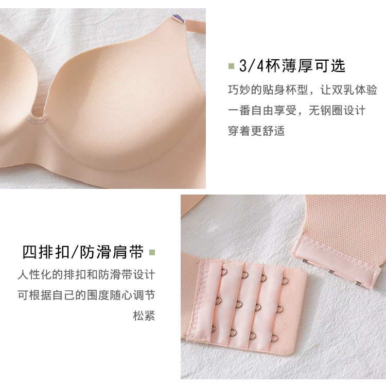厚杯少女聚拢无钢圈女内衣厂 一片式 法式 简约英伦冰丝文胸套装