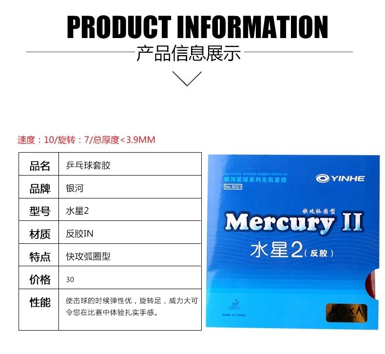 官方正品 银河水星2乒乓球胶皮套胶初学普及套粘性皮乒乓球拍反胶