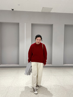 Decemberrush 新年氛围感红毛衣粗线羊毛圆领针织上衣