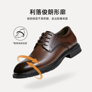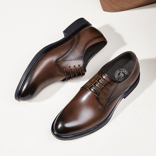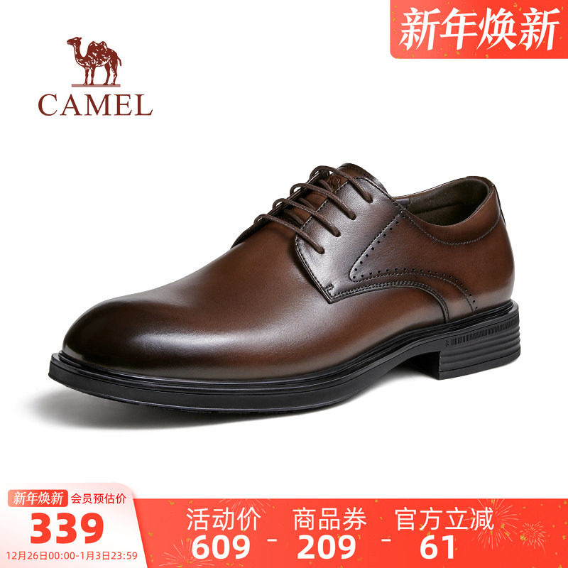 皮鞋 骆驼男鞋 亮面真皮舒适透气新郎婚礼职场商务正装 新款 2025秋季